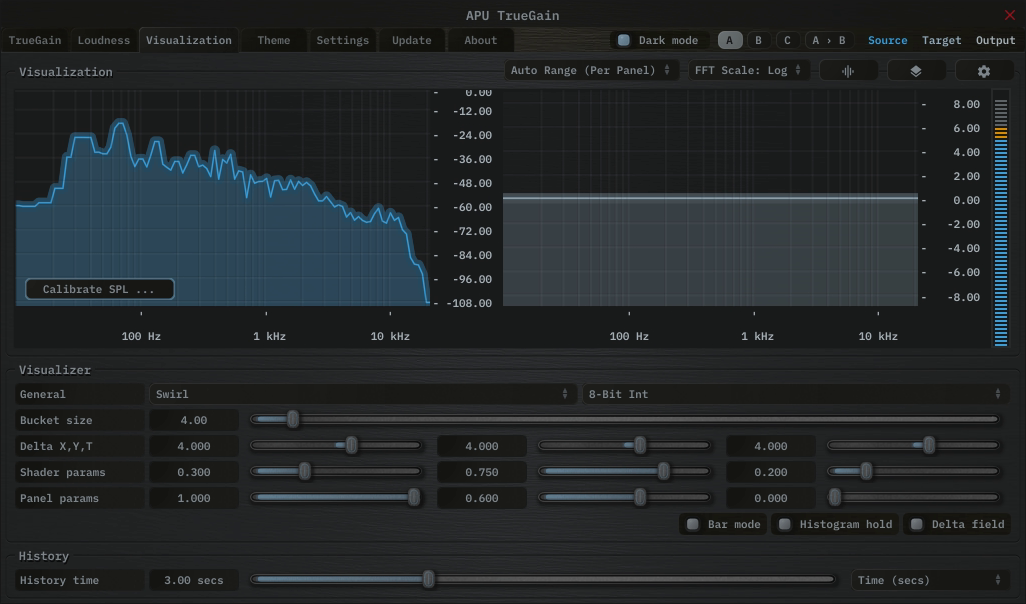 The visualization tab contains parameters related to real-time configuration of TrueGain’s visualizations. This section describes these various settings.